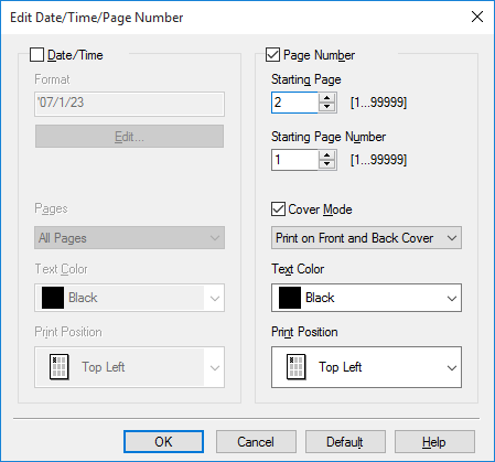 Haga clic en [Editar] para configurar la página inicial y otras opciones para imprimir el encabezado/pie de página.