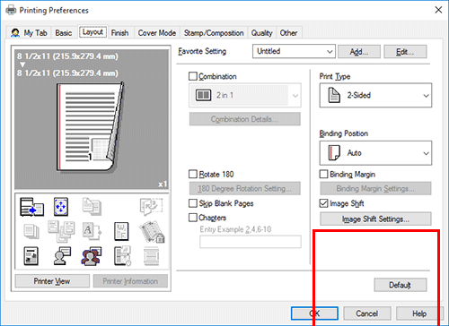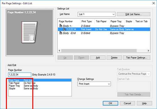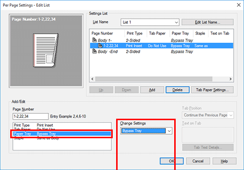 Para imprimir las portadas de capítulos en un tipo de papel diferente, seleccione la casilla de verificación [Configuración/página] en la ficha [Modo portada ].