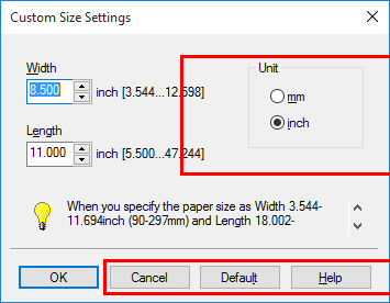 Introduzca el tamaño de papel cargado y, a continuación, haga clic en [Aceptar].