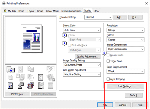 En la ficha [Calidad], haga clic en [Configuración de fuente].