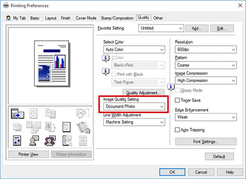 En [Configuración de calidad de imagen] en la pestaña [Calidad], seleccione el tipo de documento que se vaya a imprimir.