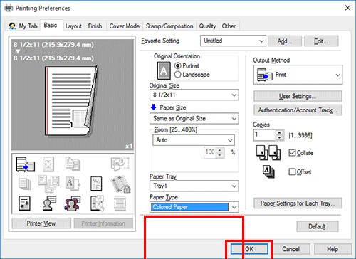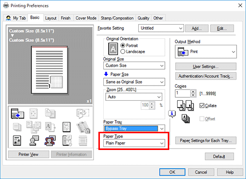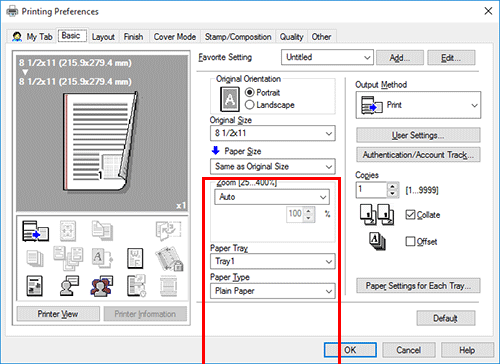 En [Bandeja de papel] en la pestaña [Básicas], seleccione una opción distinta de [Auto].