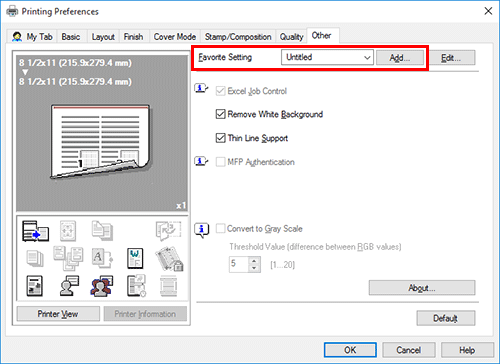 Haga clic en [Config. favorita], junto a la casilla [Agregar].