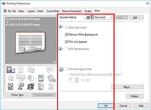 Configure los elementos correspondientes de la configuración favorita y, a continuación, haga clic en [Aceptar].