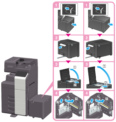 Certaines zones à l'intérieur de l'appareil sont soumises à des températures élevées susceptibles de causer des brûlures. Lors de la vérification de l'intérieur de la machine, à la recherche d'une anomalie comme un bourrage papier par exemple, ne pas toucher pas les zones (autour de l'unité de fixation, etc.) qui sont indiquées par l'étiquette d'avertissement "Caution HOT". Vous pourriez vous brûler.