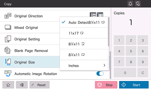 Si el tamaño del original no se detecta automáticamente, especifique el tamaño del original que desea escanear.