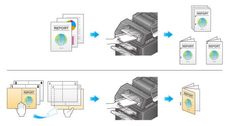 Las opciones de perforación están disponibles junto con las opciones de grapado en la esquina o de grapado en 2 posiciones.