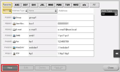 You can also register fax destinations using Web Connection. For details, refer to Here.