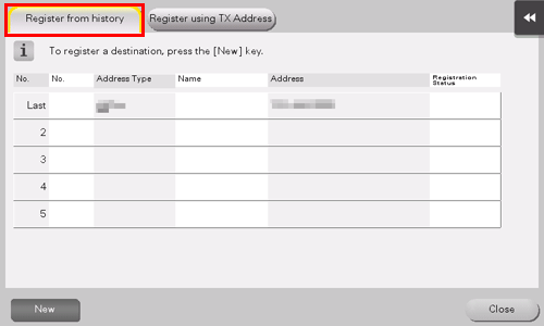 3. Tap [Register from history].