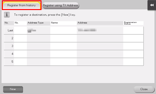 Tap [Register from history].