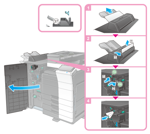 The figure shows the Finisher FS-537 SD equipped with Punch Kit PK-523, Z Folding Unit ZU-609, Job Separator JS-602, and Relay Unit RU-513.