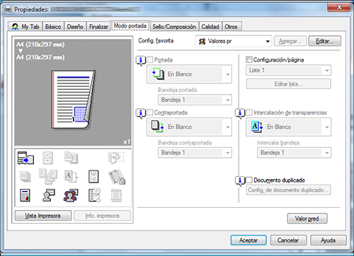En la ficha [Modo portada], seleccione la casilla de verificación [Documento duplicado].
