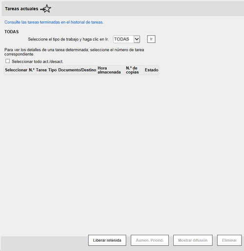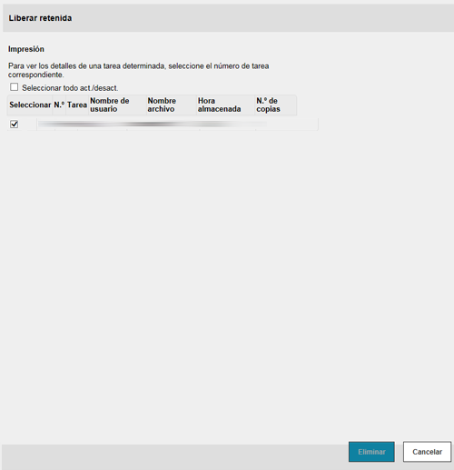 Una tarea, que se ha enviado a la máquina con [Impr. prueba] activada, puede borrarse de forma remota utilizando Web Connection a través del explorador web del ordenador.