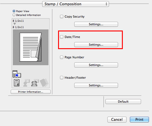 En [Stamp / Composition], seleccione la casilla de verificación [Date/Time].