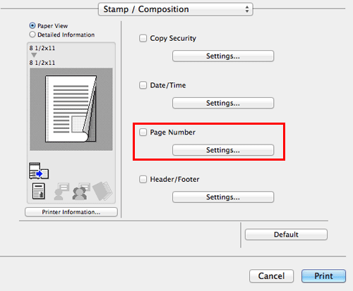 En [Stamp / Composition], seleccione la casilla de verificación [Page Number].