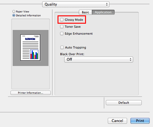 En [Quality], seleccione la casilla de verificación [Glossy Mode].