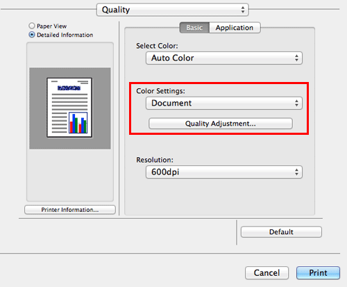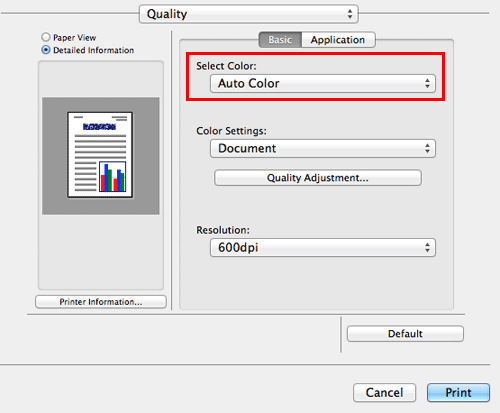 En [Select Color:], en [Quality], seleccione un modo de color para la impresión.