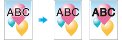 Configure el ajuste [Black Over Print:] para superponer el color negro sobre un color cercano en la impresión para evitar que se generen espacios en blanco alrededor de caracteres o figuras de color negro. Puede seleccionar si debe imprimirse solo en negro alrededor de los caracteres, o bien alrededor de caracteres y figuras.