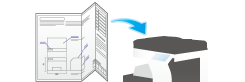 Es posible escanear documentos de doble página como, por ejemplo, libros y catálogos de forma independiente en las páginas izquierda y derecha, o escanearlos como una sola página. Si coloca un libro o catálogo en el cristal de originales, no es necesario cerrar el ADF para escanearlos.