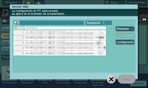 Los ordenadores de la red, en la que la máquina está registrada como escáner con servicio web, aparecen como destinos.