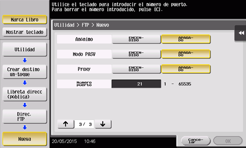 También puede registrar un destino FTP mediante Web Connection. Para obtener más información, consulte Aquí.