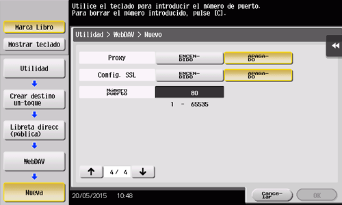 También puede registrar un destino WebDAV mediante Web Connection. Para obtener más información, consulte Aquí.