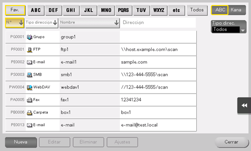 También se pueden registrar destinos de fax mediante el uso de Web Connection. Para obtener más información, consulte Aquí.