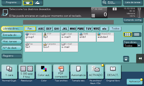[Ordenar caracteres] | Introduzca el mismo nombre que el registrado (utilizando 24 caracteres como máximo). Puede clasificar los destinos por nombre de registro. |