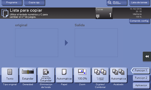 Si lo desea, toque [Comprob. config.] antes de iniciar una copia para verificar la configuración.