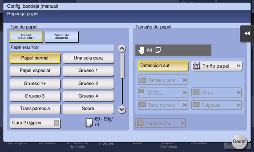 Toque [Cambiar aj. bandeja] - [Tamaño de papel].