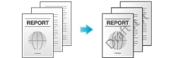 La imagen original escaneada en la primera página se superpone sobre los originales escaneados en las páginas subsiguientes. El original que se escanea en la primera página se usa como imagen de superposición. Por ejemplo, si copia tres páginas del original, se obtienen dos páginas: una con "una imagen fusionada de la primera y segunda páginas" y otra con "una imagen fusionada de la primera y tercera páginas". La función de Superposición es útil para superponer texto, figuras o imágenes que no se han configurado con ninguna de las otras funciones de sello en el original.