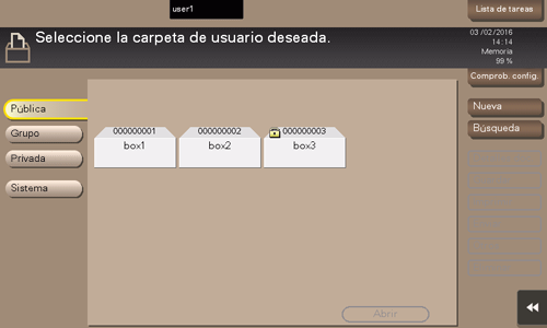 El usuario puede almacenar documentos en la carpeta de usuario. Asimismo, puede imprimir un archivo de la carpeta de usuario o enviar un archivo a otro usuario.