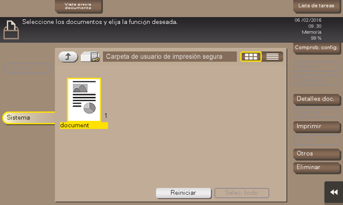 Aparece la lista de documentos de impresión segura que coinciden con la contraseña especificada.