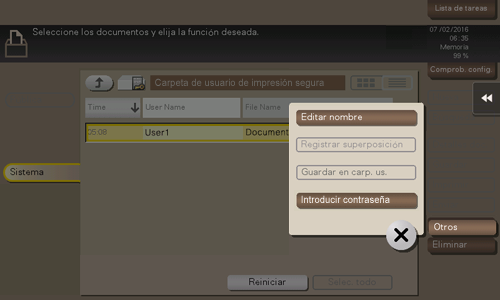 4. Seleccione el archivo que se debe imprimir y, a continuación, toque [Otros] - [Introducir contraseña].