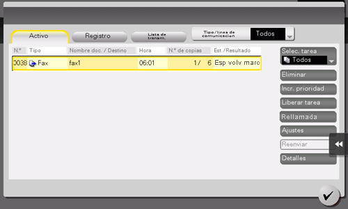 Las tareas pendientes de reenvío se reenvían automáticamente transcurrido un tiempo mediante la función de rellamada automática. Sin embargo, también se puede reenviar el fax manualmente.