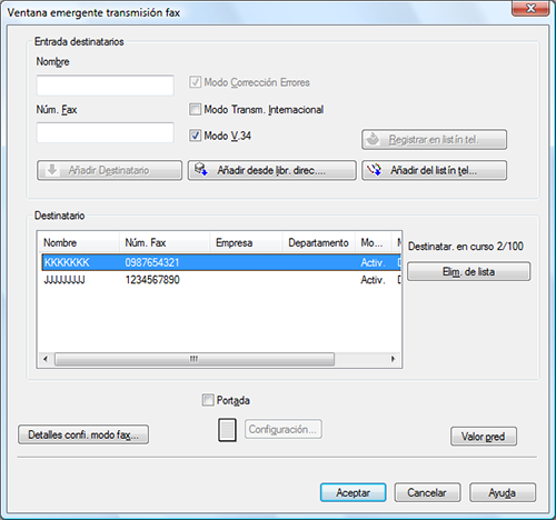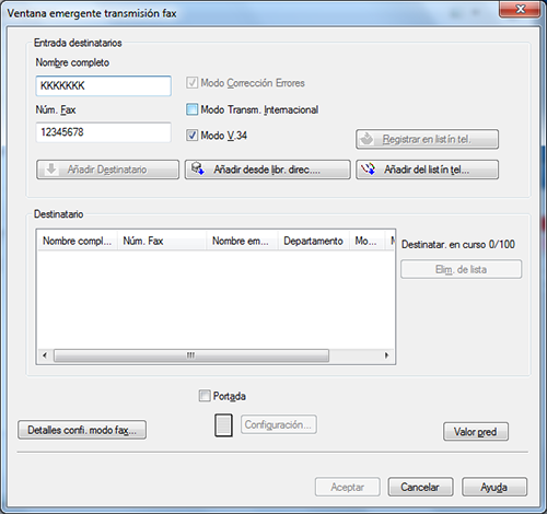 Cuando selecciona un destinatario de la libreta de direcciones del PC, haga clic en [Añadir del listín tel...] Para obtener más información, consulte Aquí.