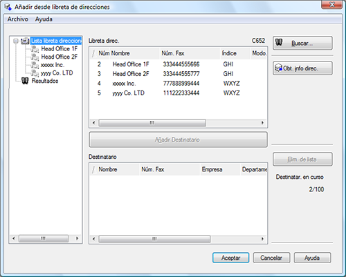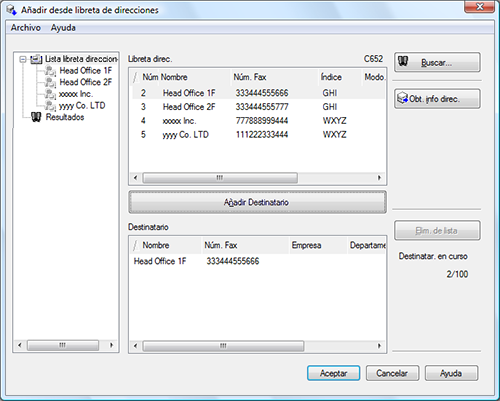 Seleccione el destinatario de la lista [Libreta direc.] y, a continuación, haga clic en [Añadir Destinatarios].