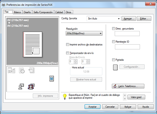La configuración de impresión se registra como favorita. Puede seleccionar la configuración favorita de la lista [Config. Favorita] al enviar el fax.