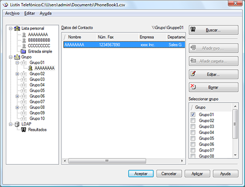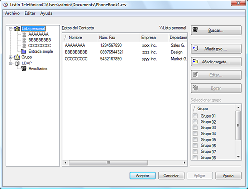 Gestión de la información del destinatario mediante el PC (utilizando el listín telefónico)