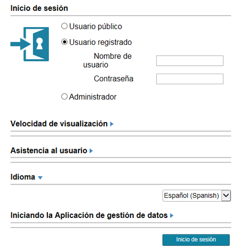 Para iniciar sesión como usuario público, seleccione [Usuario público] y, a continuación, haga clic en [Inicio de sesión] en la pantalla Inicio de sesión.