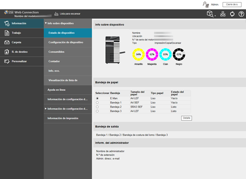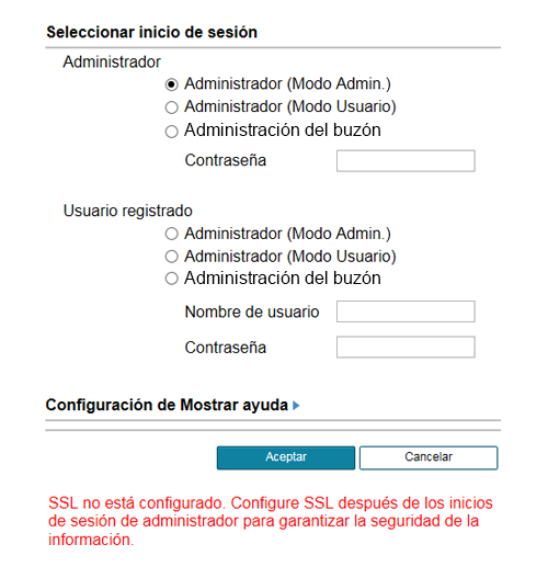 El usuario que tenga derechos de administrador puede iniciar sesión en esta máquina en modo Administrador. Para obtener más información, consulte Aquí.