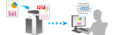 Al convertir los datos escaneados de un original en un archivo de formato PDF, pegue datos de texto transparente en el archivo PDF y, a continuación, cree un archivo PDF en el que se pueden realizar búsquedas. Esta función crea automáticamente información de texto de las imágenes escaneadas utilizando la tecnología de reconocimiento de caracteres OCR.