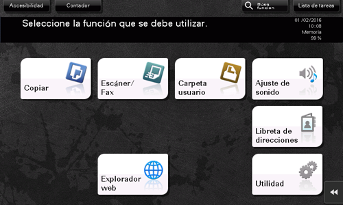 Si es la primera vez que utiliza Mi panel, el menú principal se visualiza después de que haya iniciado sesión en esta máquina.