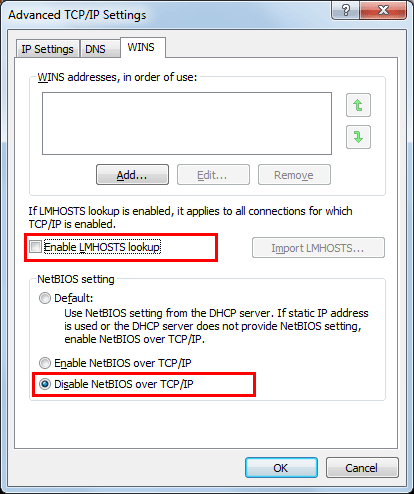 Desmarque la casilla de verificación [Habilitar la búsqueda de LMHOSTS].