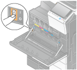 Abra la puerta frontal inferior o la puerta frontal y pulse en el interruptor principal.