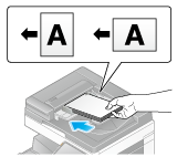 Cargue el original de forma que su cara superior se encuentre en la parte posterior. Al cargar en una orientación distinta, asegúrese de especificar la dirección de carga de originales.