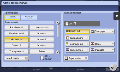 Seleccione [Grueso 1+] en [Tipo de papel].