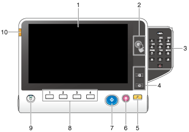 8 | 1 - 4 | Pulse cada tecla para cambiar la visualización del panel táctil a una función asignada a una tecla Registrar.