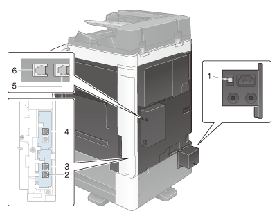 2 | Conector para teléfono (TEL PORT 1) | Se utiliza para conectar un cable telefónico. Enchufe el cable a este conector incluso cuando utilice varias líneas. |