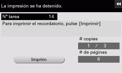 6. Toque [Imprim] o pulse la tecla Vista previa (predeterminada: tecla Registrar 4).